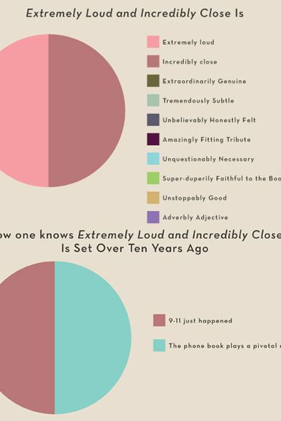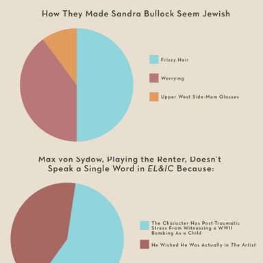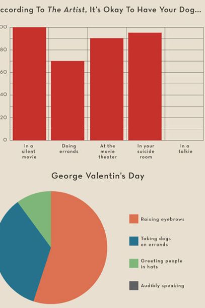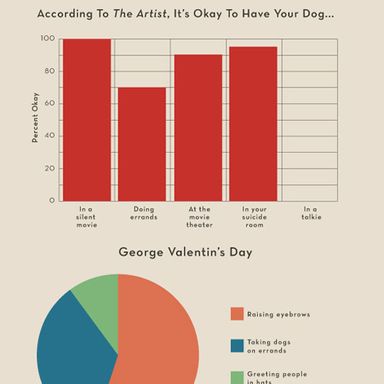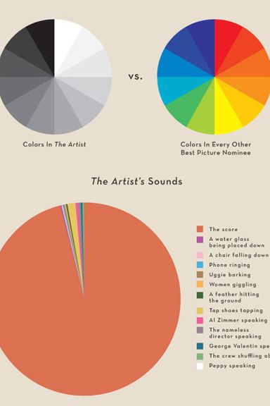 The Billy Crystal–hosted Academy Awards go down this Sunday night, with nine movies vying for Best Picture. The nominees this year aren’t all that flashy. The front-runner, The Artist, is a totally delightful … black-and-white, silent film; the most popular is the oft-criticized The Help; filling out the field are a few movies some people really love (Tree of Life and, inexplicably, Extremely Loud and Incredibly Close) and a bunch of other movies more people liked quite a bit (Moneyball, Midnight in Paris, Hugo, The Descendants, and— we guess someone must have liked it—War Horse). To spiff up this field, and get you excited for Sunday’s festivities, here are over twenty infographics — line graphs, bar graphs, pie charts, shit-pie charts — breaking down the field. Have a look!